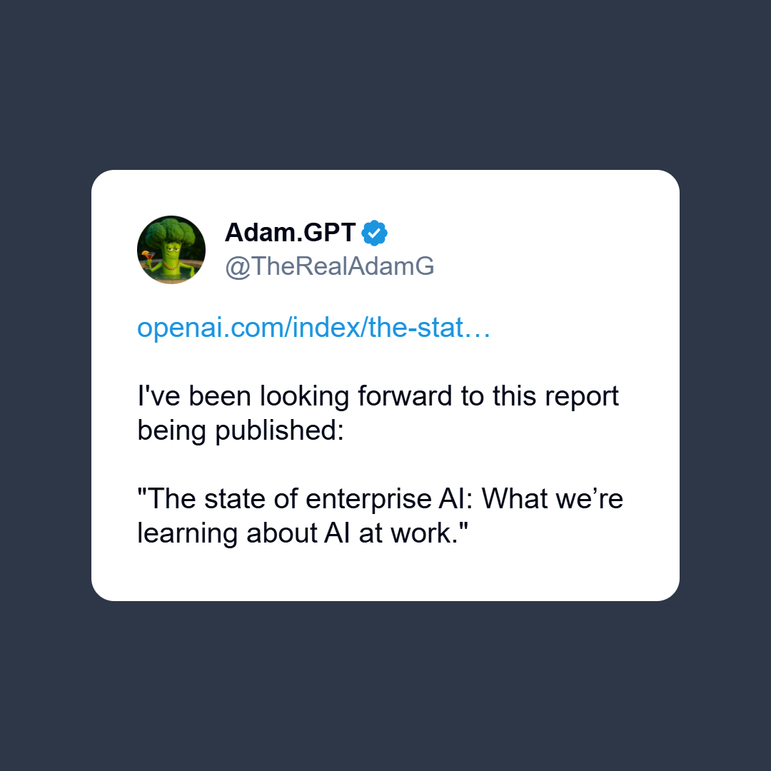 OpenAI just dropped their first-ever enterprise AI report, and the numbers are wild. Weekly ChatGPT Enterprise messages jumped 8x in a year, workers are saving 40-60 minutes daily, and 75% say AI improved their work speed or quality. But here's the kicker - the gap between power users and everyone else is widening fast.