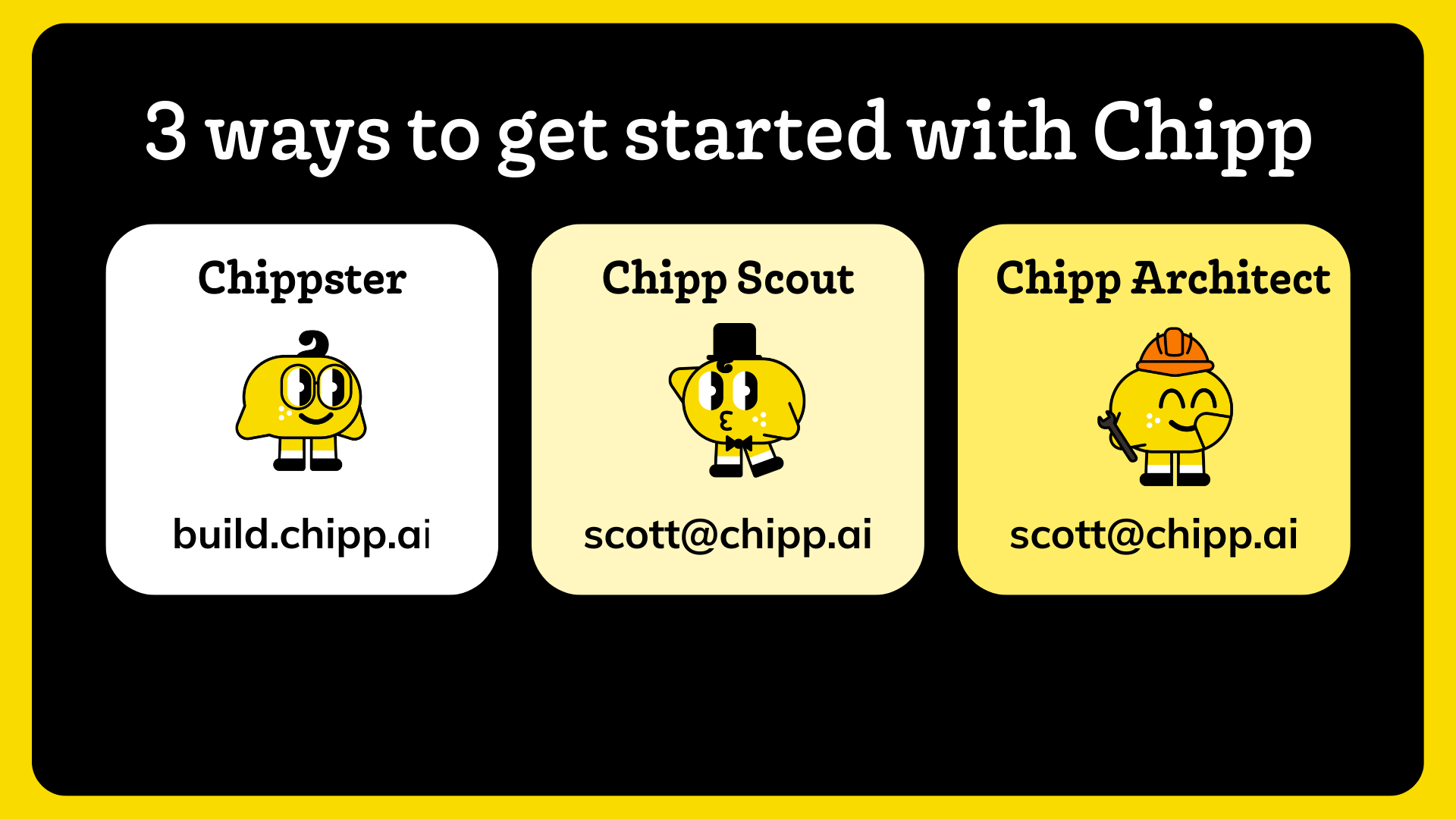 Whatever you're building, there's a path to get started with Chipp.