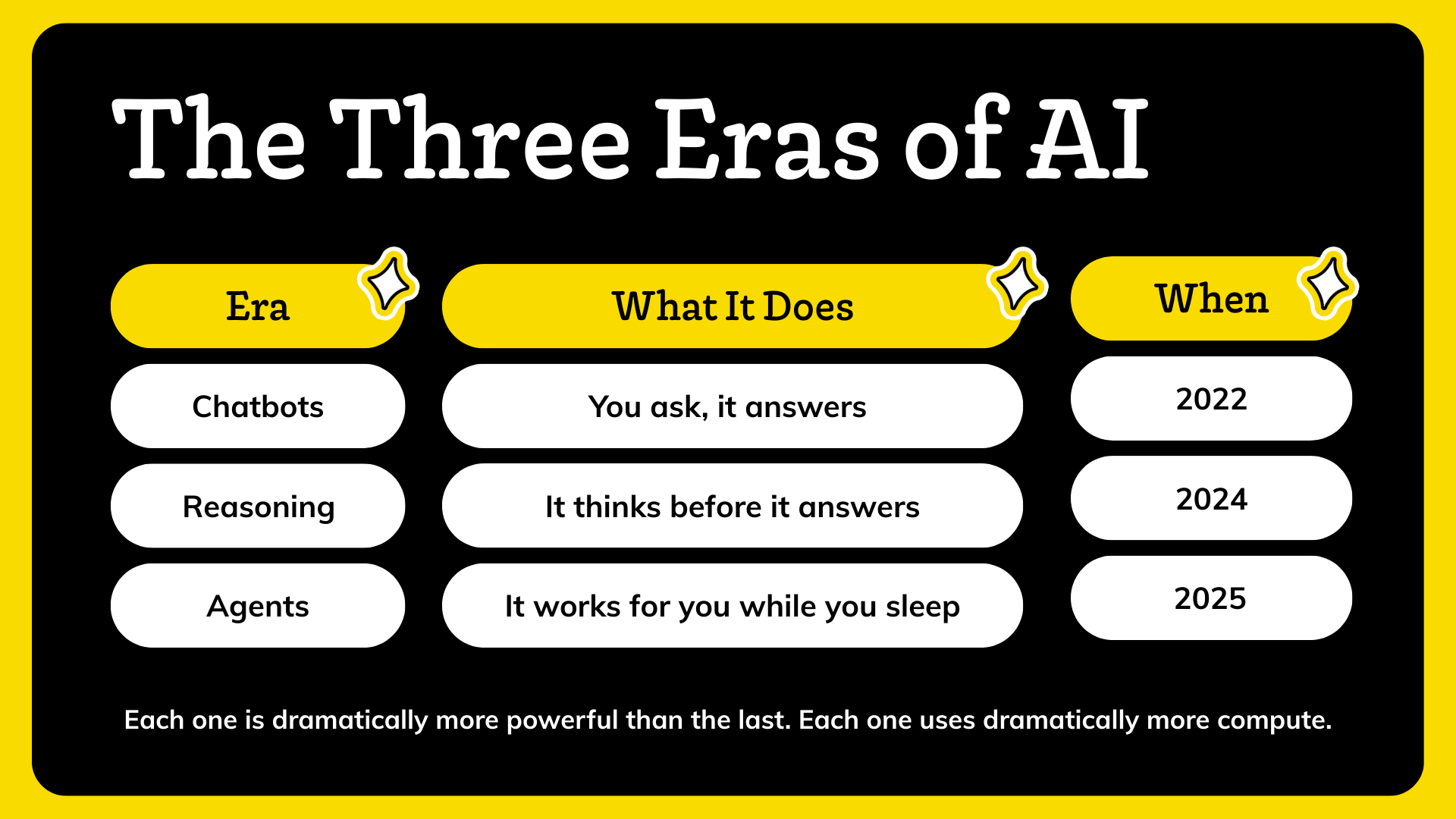 Each era is more powerful and uses more compute. The impact scales. So does cost. If you price it right, so does revenue.