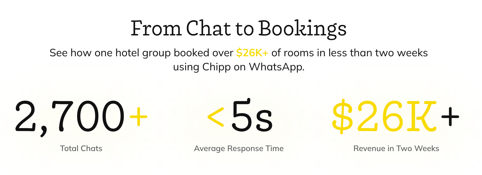 One Chipp partner is a large hotel group that uses WhatsApp to help visitors book rooms through AI chat. The behavior patterns are striking.