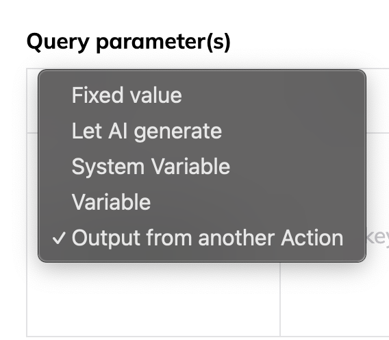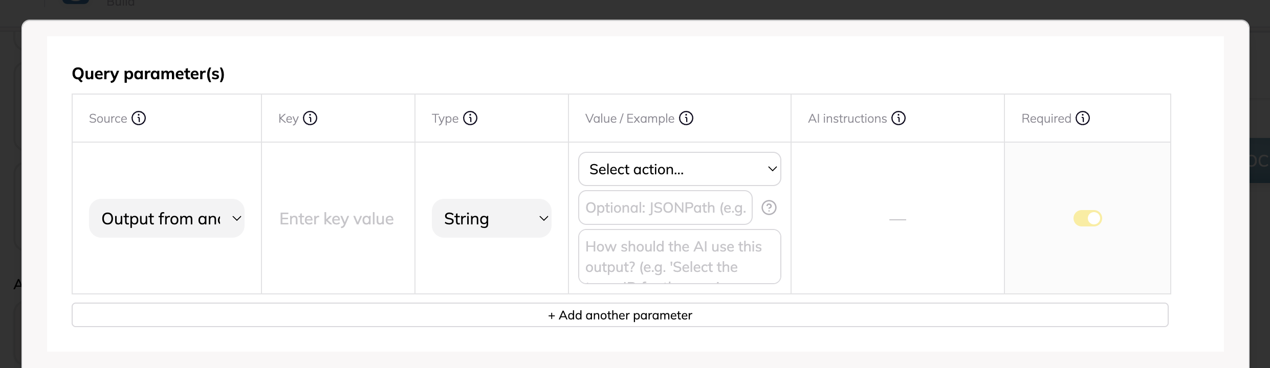 | **Action** | Choose which action's output to use | `Get User Profile` |